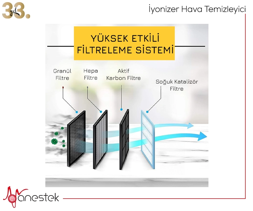 Filtre: Hepa, aktif karbon, cold catayst, negative iyon